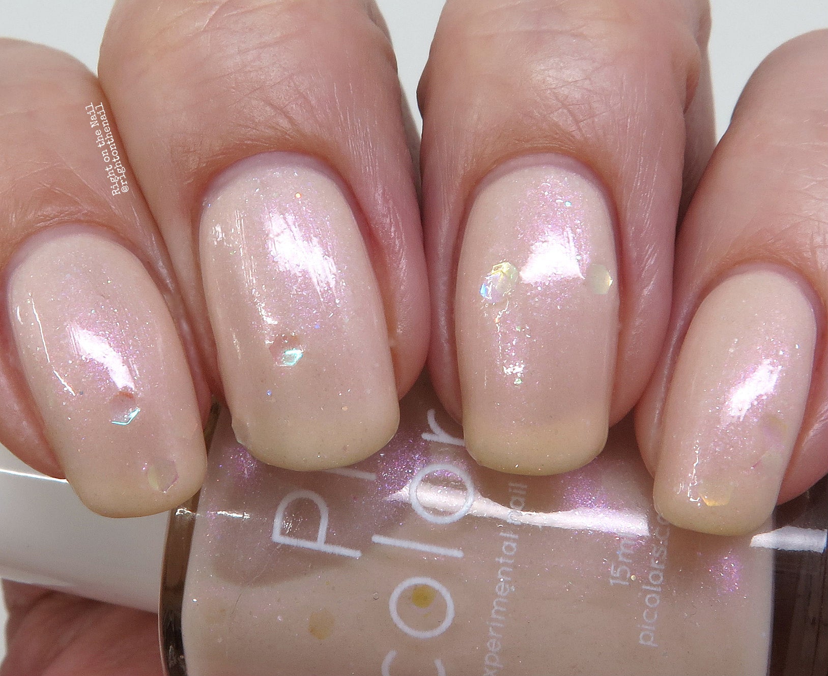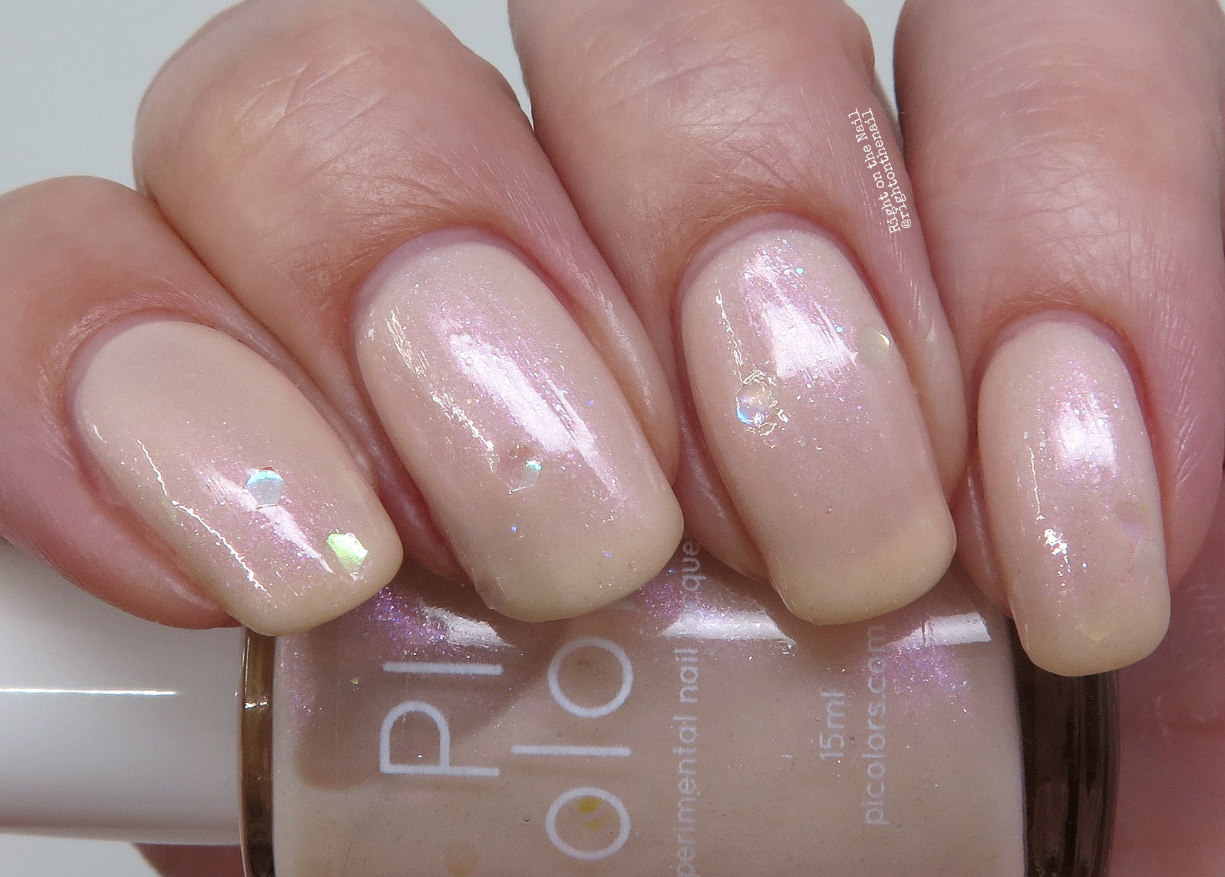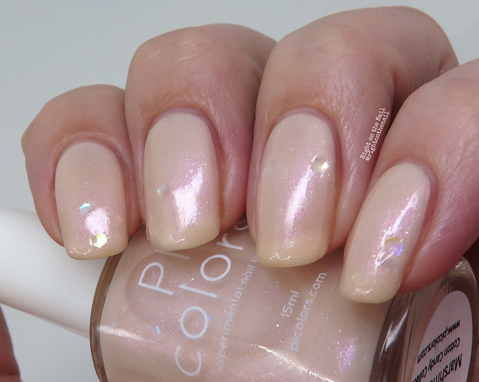 Champagne Marshmallow.202 is a pale cream pink with iridescent hex glitters and red violet shimmery overlay.