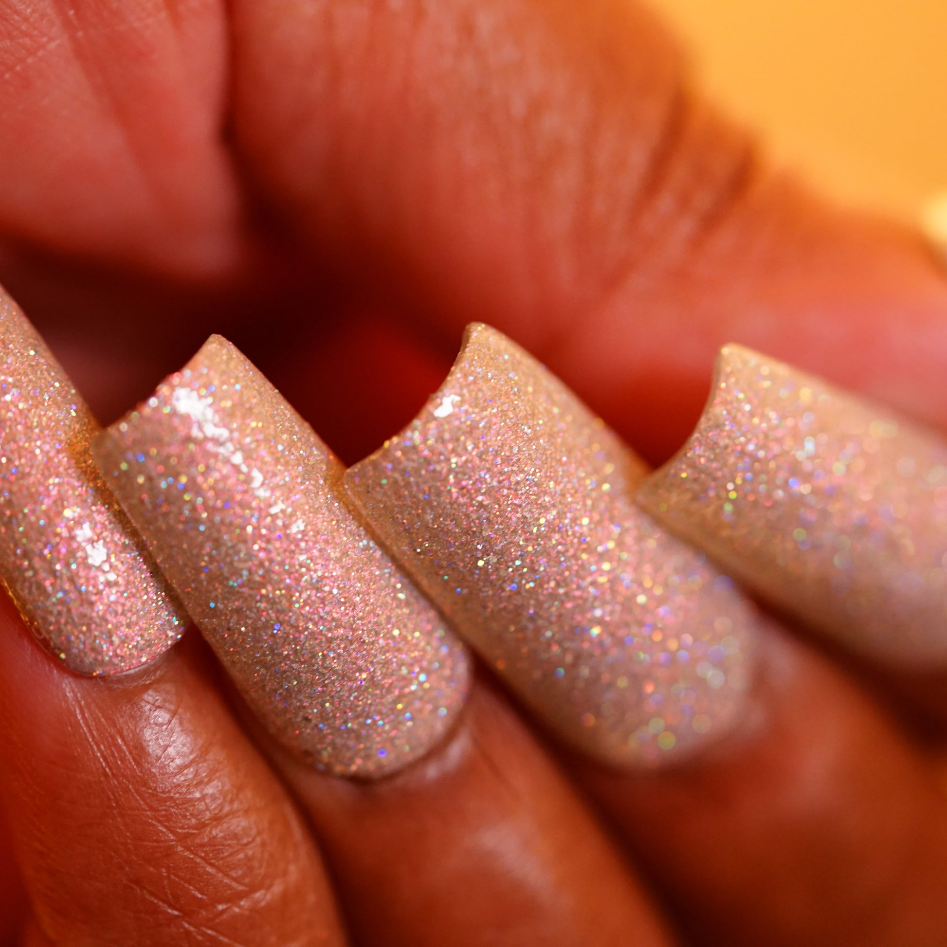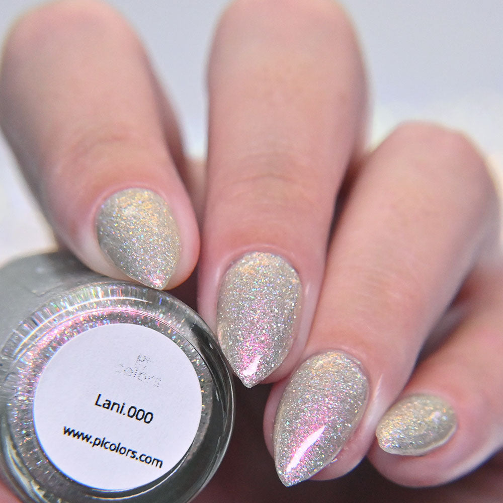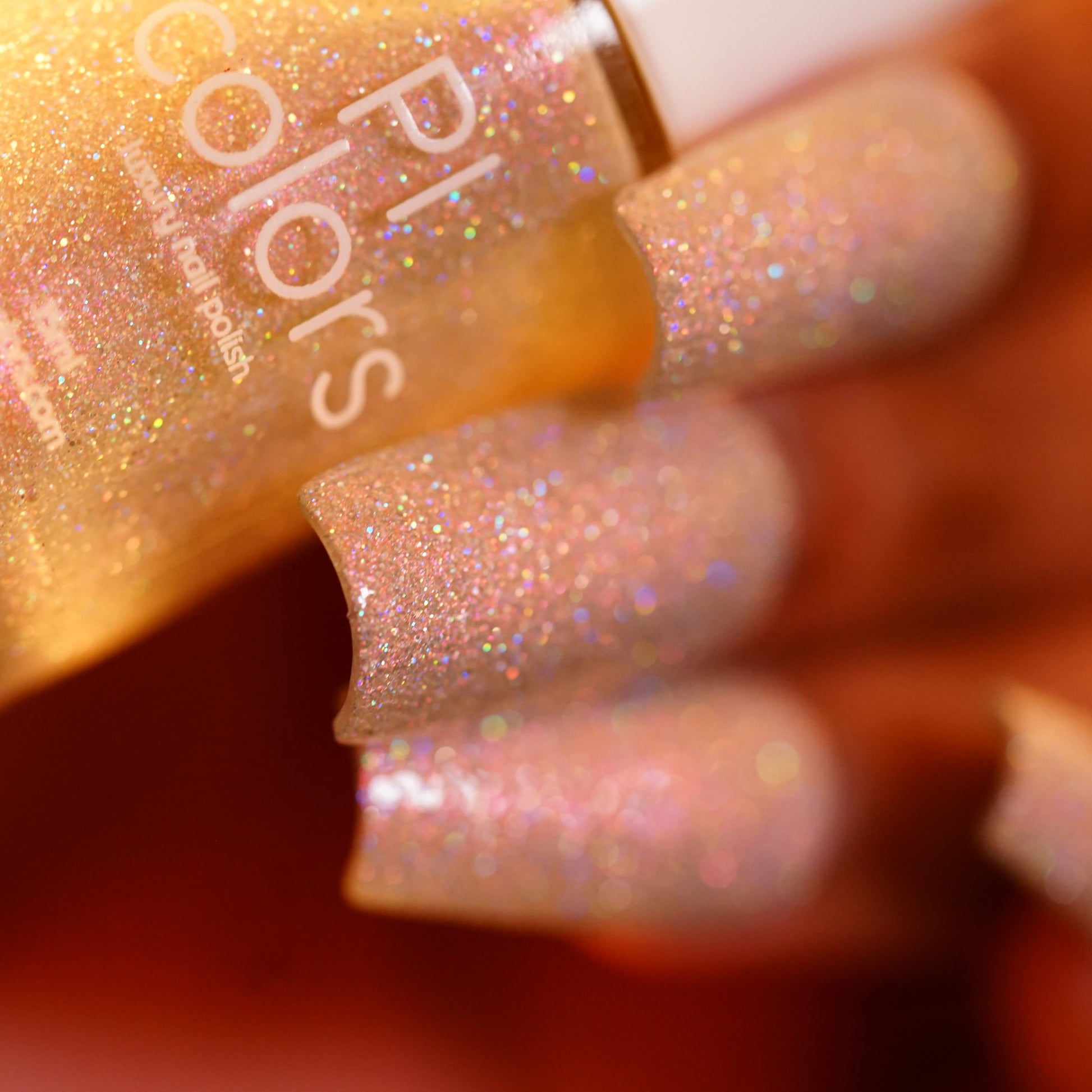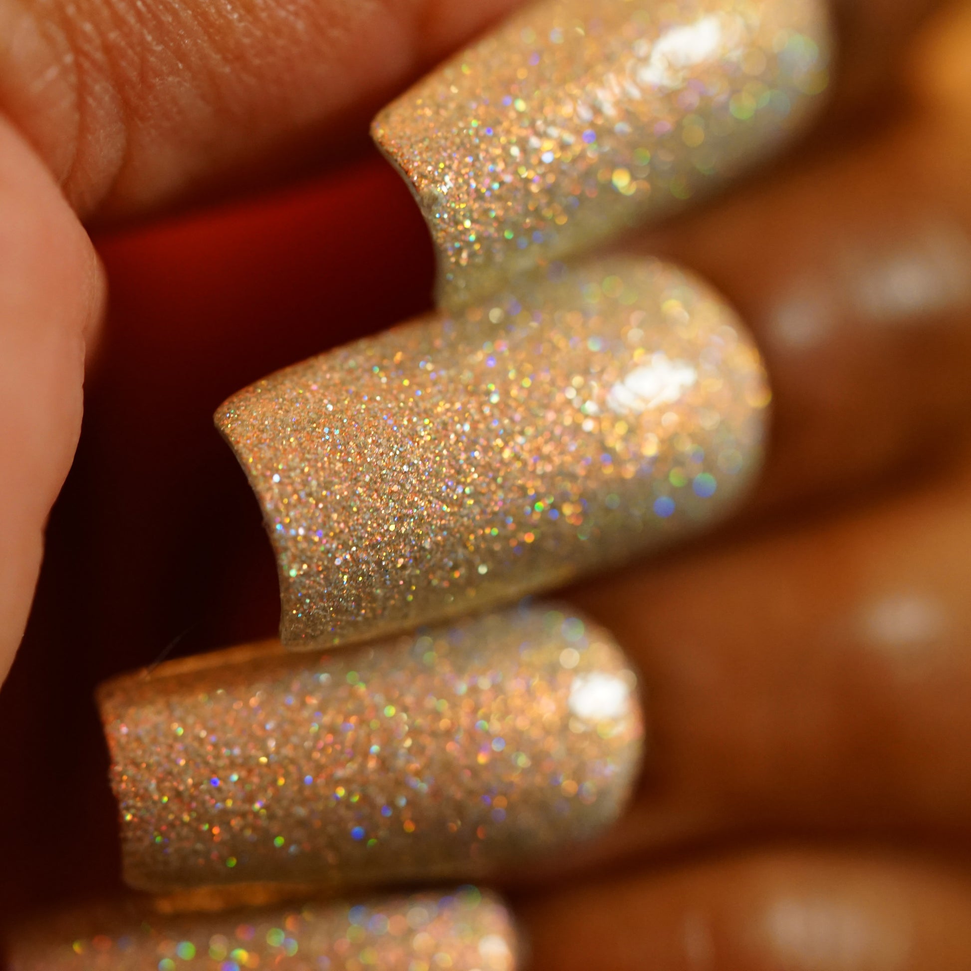 Lani.000 is a holo glitter bomb, with a gorgeous sandy beach shade with red orange, gold purple color shift that goes green on the edges. Inspired by Hawaiian beaches at sunset.
