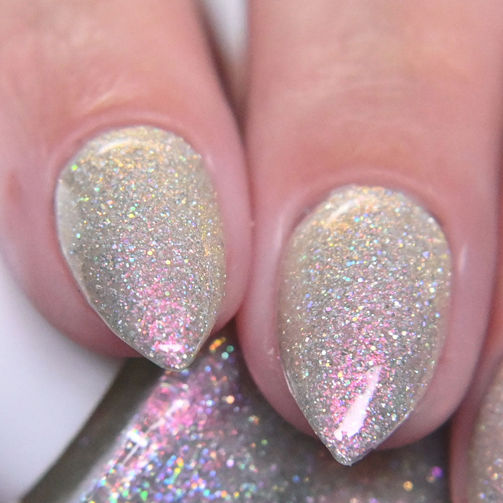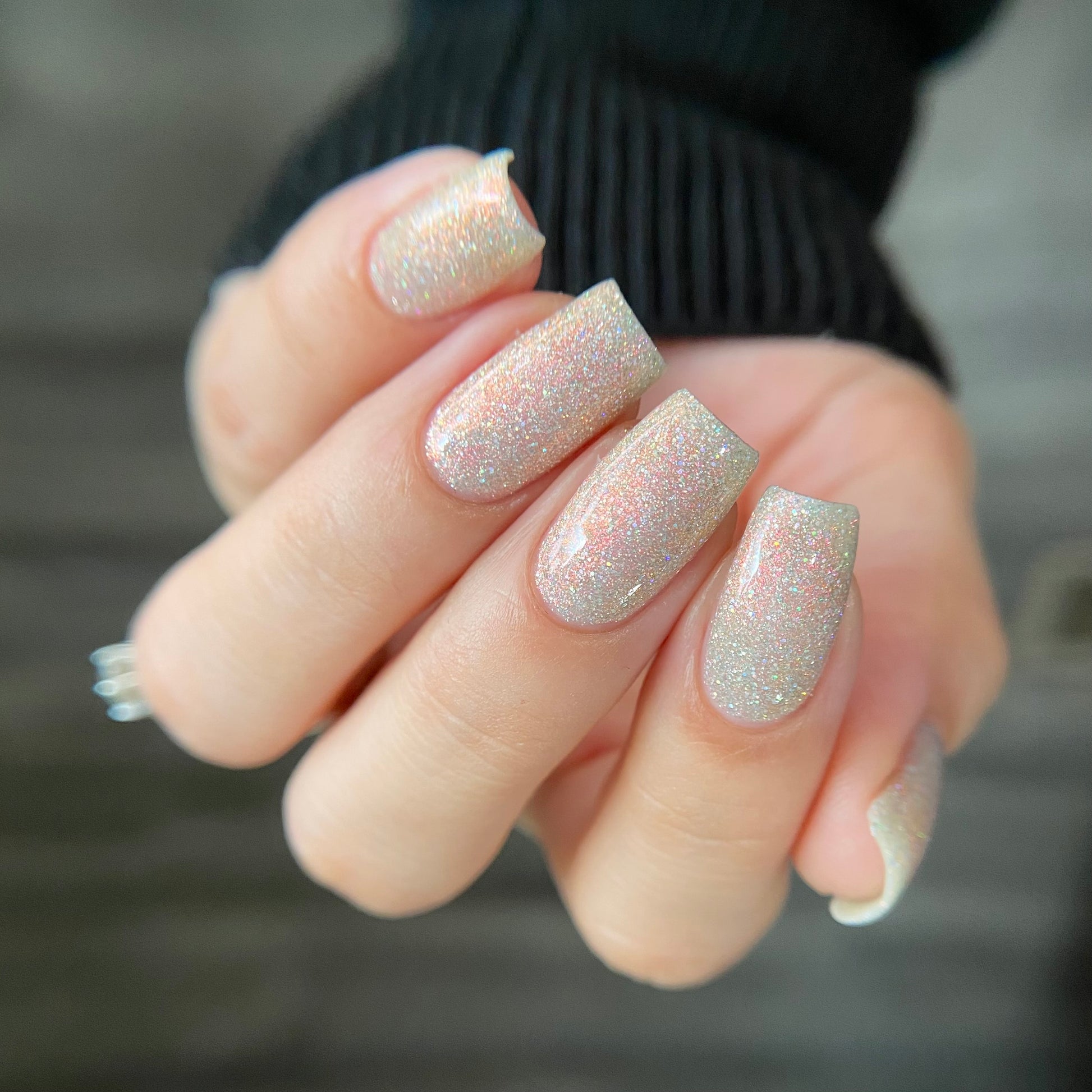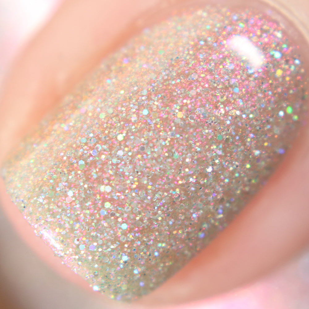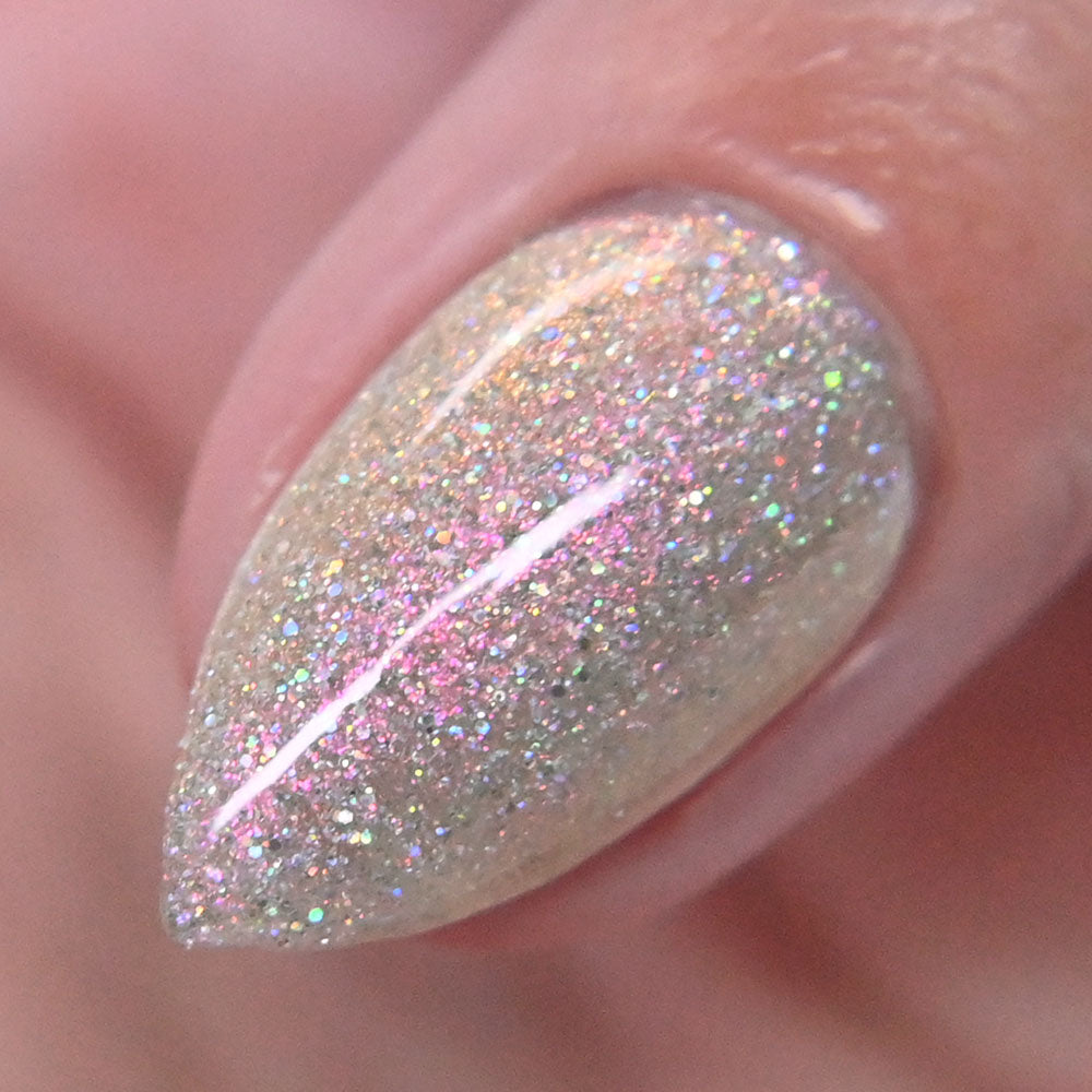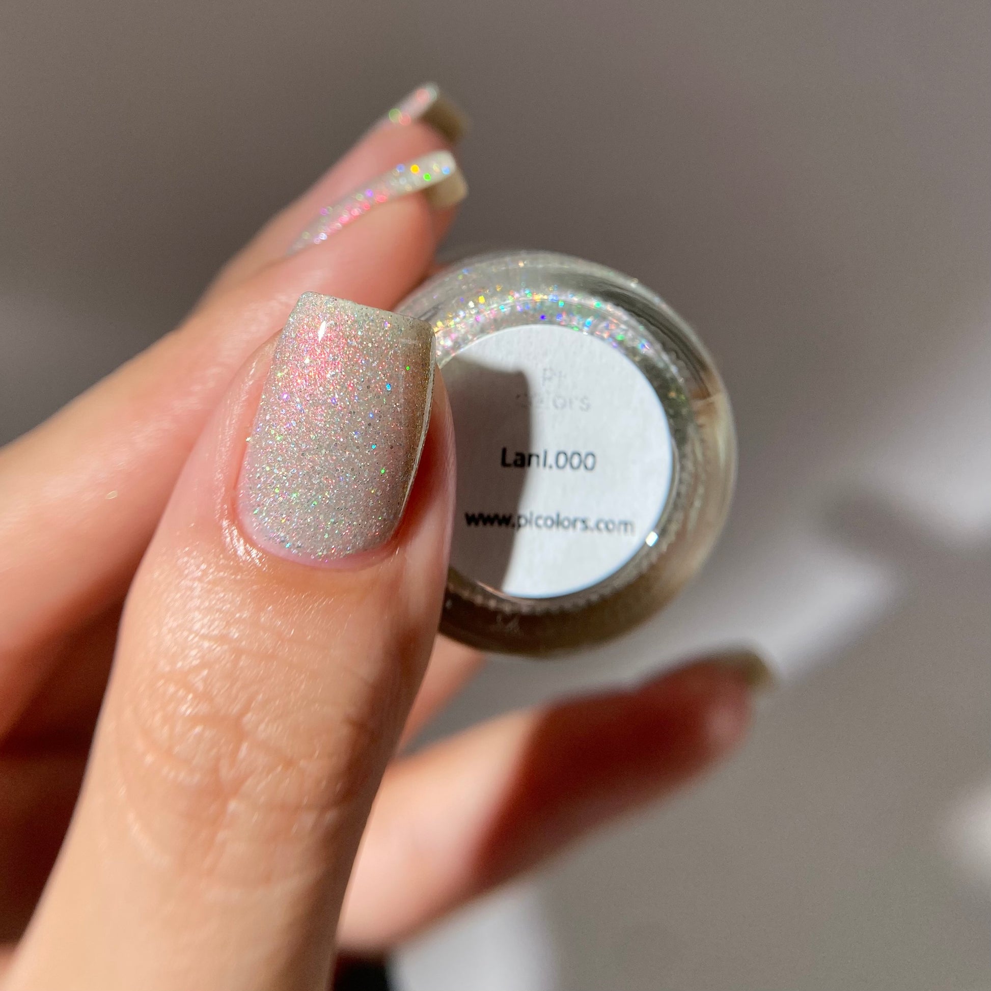Lani.000 is a holo glitter bomb, with a gorgeous sandy beach shade with red orange, gold purple color shift that goes green on the edges. Inspired by Hawaiian beaches at sunset.