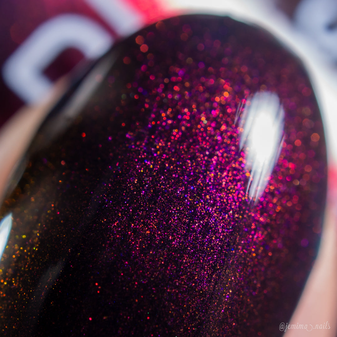 This polish is a deep purple nail polish with a red to gold shimmer.